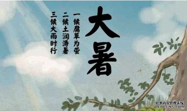 大暑:二十四节气之第十二。北半球在每年7月22-24日之间,南半球在每年1月20-21日之间,太阳位于黄经120°。
