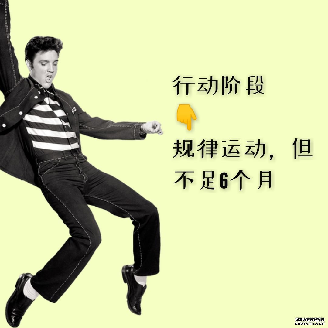 挺过了准备阶段,来到了行动阶段,这个阶段的特点是基本突破了心理障碍,已经为后期的长期运动做好了十足的准备并坚持运动,但是时间往往是小于6个月