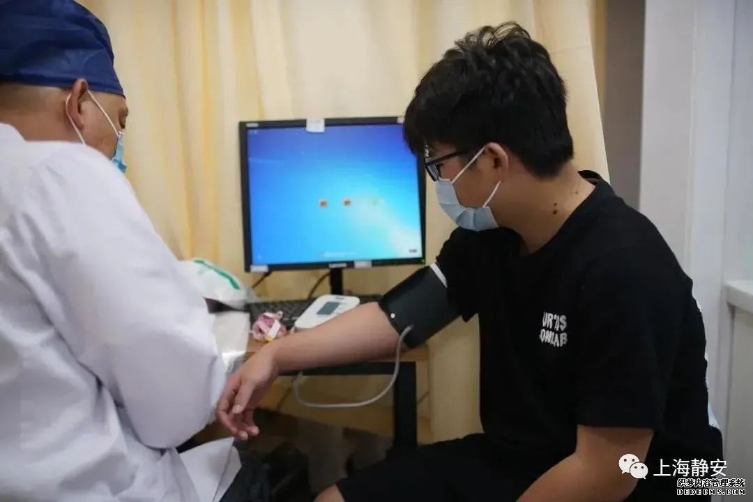 电竞选手在彭浦新村社区卫生服务中心进行了测量血压、空腹抽血、眼底检查、口腔检查、放射影像检查等系列体检项目。