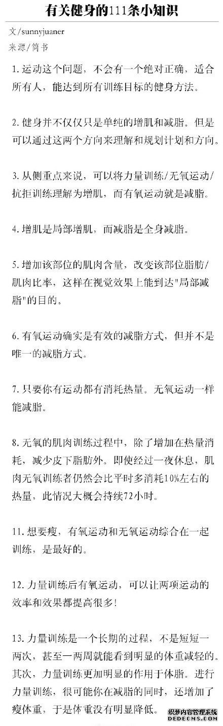 有关健身的111条小知识,熬过了必须的苦,才能收获完美身材,健身贵在坚持!收了吧!