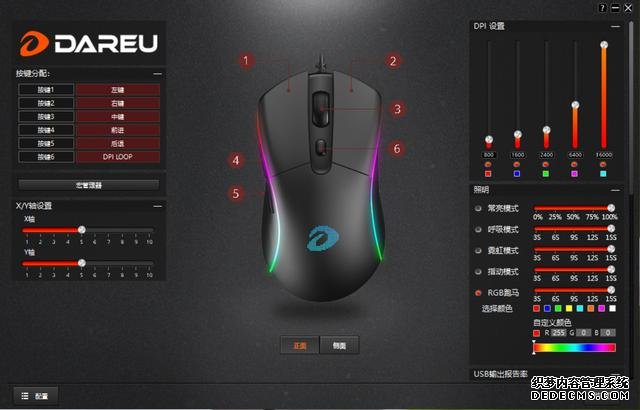 驱动程序里提供了自定义按键功能,用户可以根据自己的使用习惯和场景设置这些按键的功能,对于提升工作效率是非常有帮助的。除此之外在软件里可以更加精细地调整鼠标的dpi以及灯光闪烁模式。