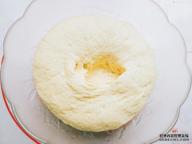 6、发酵时间根据天气冷暖程度,温度高的话,发面时间短,反之,时间长点。面团发至两倍大时,拿出来排气。