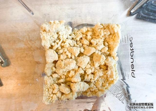 2、用料理机打10次左右,一次打1秒,等面粉跟黄油块充分的混合。