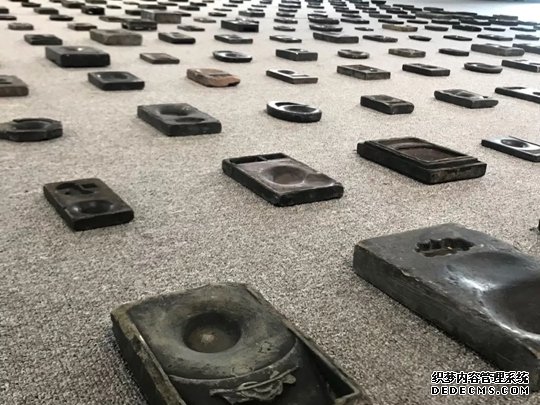 主办方介绍,此次展览展期为一天,所有布展的过程,也是作品展的一部分。从作品运送到馆,到连续多日的布展安装,这是一个整体,更是从分到合的展览呈现。每一件作品的下面,都有一块或是数块、数百块古砚相对应,这是一件作品的引,时间被定格。这些被研磨透空的一方方古砚既是古人饱学之士清苦研学的写照,也是中华文明审美路径的实证。由此展示中华文明中生活和审美路程鲜为人知的不同侧面,借以索引抑或厘清中华文明发生、发展轨迹的点滴色相,寻觅悠长岁月累积下的印记。