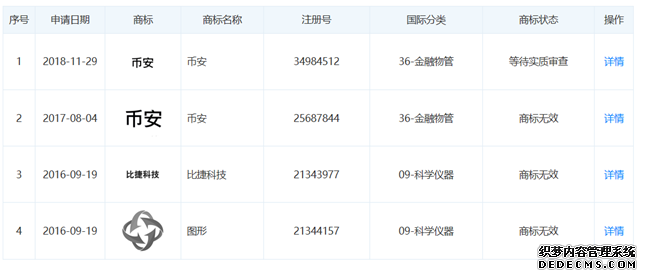 其中,上海比捷网络科技有限公司于去年11月29日申请了一个“币安”字样的商标,目前正在等待实质审查。2017年8月4日,其也曾申请过一个“币安”字样的商标,不过目前显示商标无效。