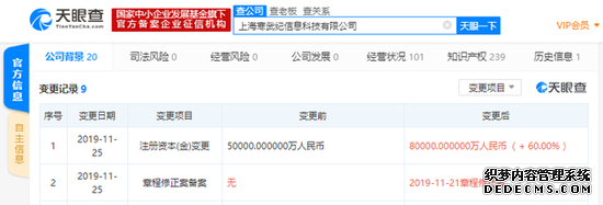 11月27日上午消息,天眼查数据显示,11月25日,AI独角兽寒武纪全资子公司——上海寒武纪信息科技有限公司发生工商变更,注册资本由原来的5亿人民币新增至8亿人民币,增幅达60%。