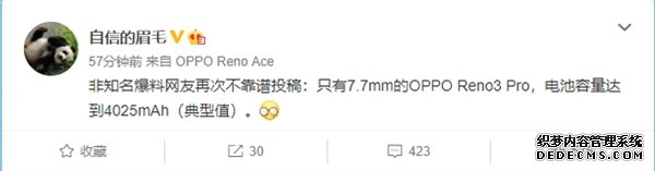 11月29日消息,OPPO副总裁沈义人爆料Reno3 Pro。