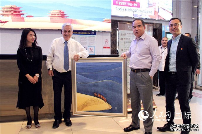 4月25日,智利总统皮涅拉到访秀水街。秀水街向皮涅拉赠送了李凤鸣创作的《脊梁》。这是“一带一路”系列水彩作品的代表作之一,寓意着丝绸之路是东西方贸易的纽带,是经济的脊梁。以这幅作品为礼,也包含了对中智两国友谊长存的祝福。