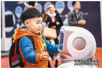 伴随科技发展,越来越多智能家居进入家庭生活。图为在首届新疆智能产业博览会上,小朋友与一款智能机器人互动。 |