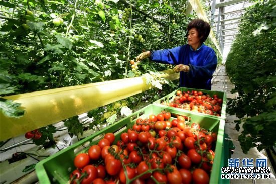 5月25日,工人在河北省南和县贾宋镇一家现代农业园区采摘西红柿。新华社记者 朱旭东 摄