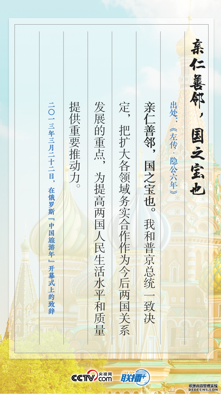 “亲仁善邻,国之宝也。”广泛采撷古人的经典名句,巧加点化,赋予其鲜活的时代价值是习近平讲话的一大特色。近年来,习近平曾多次引用古文典籍中的佳句,情真意切地表达了对中俄关系的高度重视,寓意深邃,生动传神。央视网特整理,带您一起学习经典,品味其中的独特韵味。